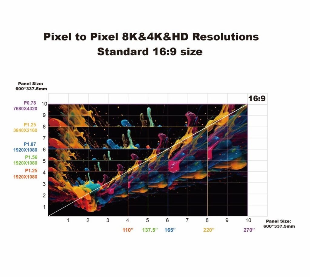 | Pixel Pitch | P0.625 | P0.78 | P0.93mm | P1.25mm | P1.56mm | P1.87mm |